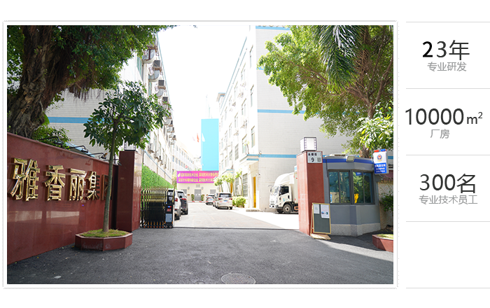 占地面積一萬(wàn)余平方米,專業(yè)技術(shù)員工300余人,雅香麗憑借著在行業(yè)內(nèi)的專業(yè)化、精細(xì)化、特色化、新穎化、可持續(xù)化,榮獲國(guó)家"高新技術(shù)企業(yè)"、"深圳市專精特新中小企業(yè)"等重量級(jí)認(rèn)證。